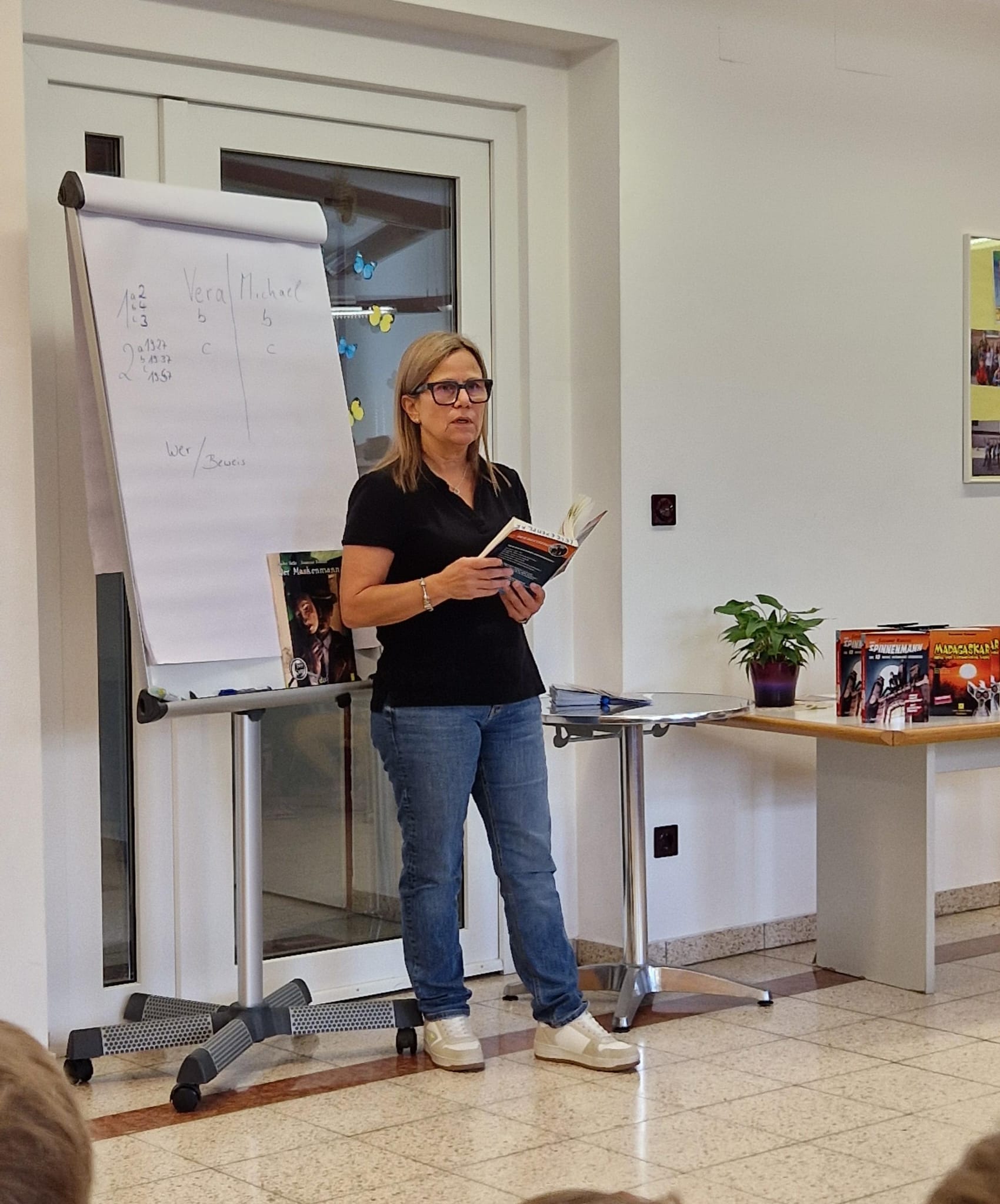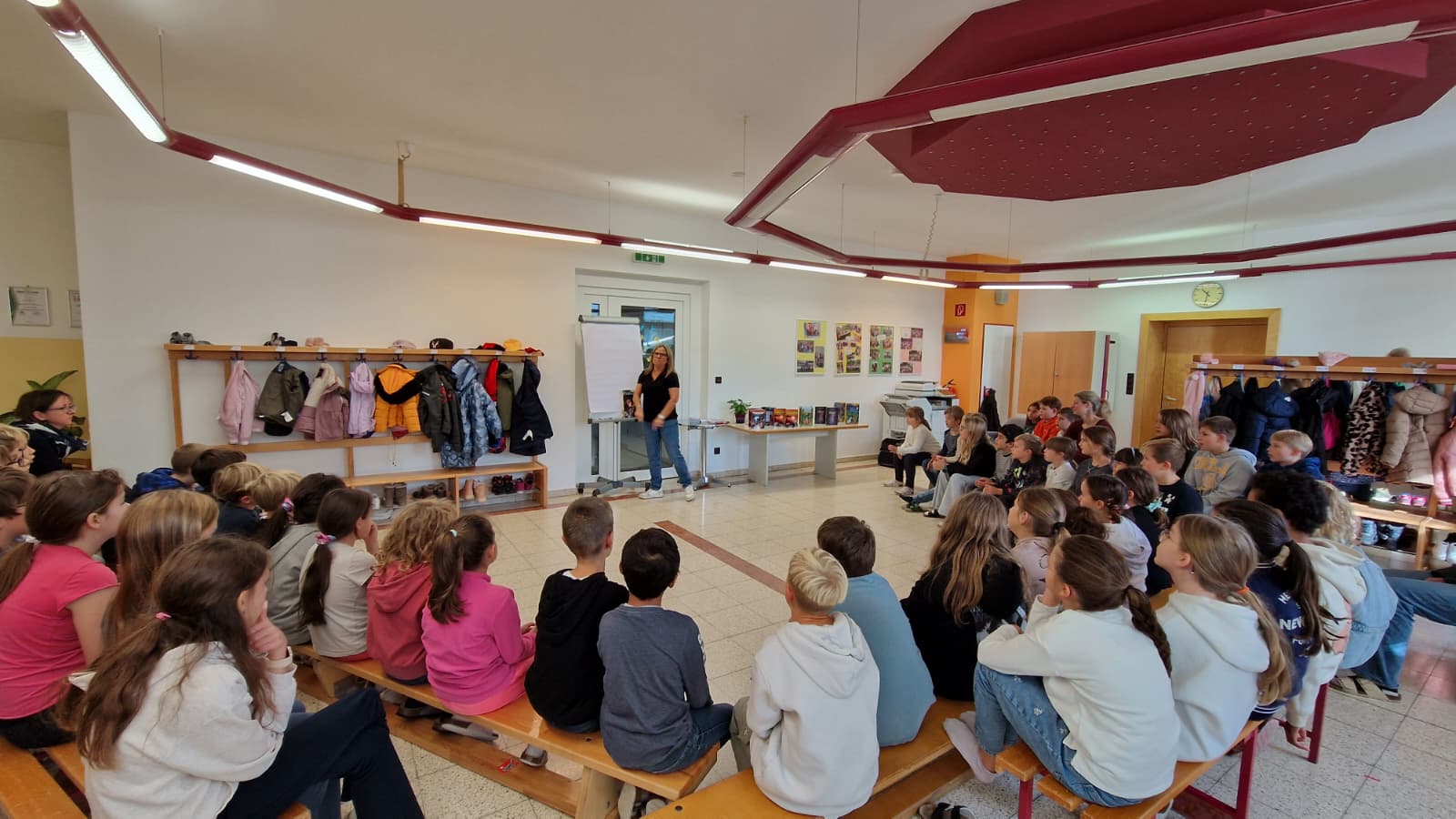 Autorenlesung Susanne Knauss - Ein spannender Vormittag rund ums Lesen Heute fand an unserer Schule eine besondere Autorenlesung mit Susanne Knauss statt. Sowohl die Grundstufe I als auch die Grundstufe II durften jeweils eine spannende Lesestunde erleben. In der Grundstufe I standen das gemeinsame Zuhören und Mitmachen im Mittelpunkt. Die Kinder beteiligten sich aktiv, stellten viele Fragen und tauchten mit Begeisterung in die Geschichtenwelt der Autorin ein. Es war ein lebendiger und inspirierender Vormittag, der gezeigt hat, wie spannend Lesen sein kann. |
