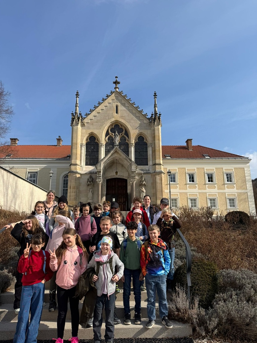 Ausflug ins Stift Heiligenkreuz Die beiden vierten Klassen unternahmen einen spannenden Ausflug ins Stift Heiligenkreuz. Besonders gefreut haben wir uns, dass Pater Leo Maria, der im letzten Schuljahr unser Religionslehrer war, persönlich die Führung durch das Stift übernahm. Mit großem Interesse lauschten die Kinder seinen Erzählungen über das Leben der Mönche, die Geschichte des Klosters und den Alltag im Stift. Dabei durften sie viele beeindruckende Orte besichtigen – unter anderem die Kirche, den Kreuzgang und den Innenhof. Der Ausflug bot eine wunderbare Gelegenheit, Geschichte, Religion und gelebte Tradition hautnah zu erleben und gleichzeitig einen besonderen ehemaligen Lehrer wiederzutreffen. |