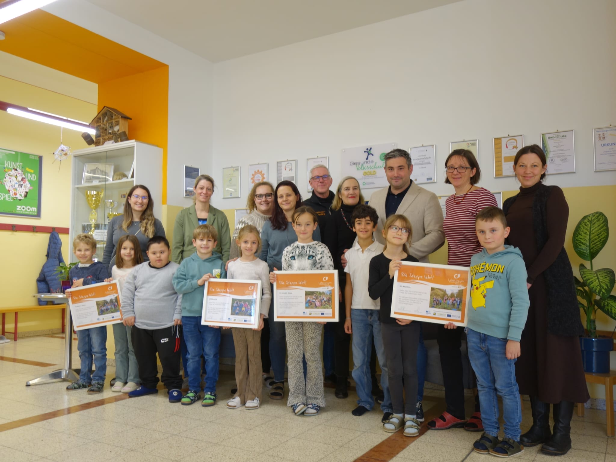 Übergabe Urkunde Biosphärenpark Auch in diesem Jahr setzten sich die Schülerinnen und Schüler der Volksschule Alland wieder tatkräftig für den Artenschutz im UNESCO Biosphärenpark Wienerwald ein. Mit großem Engagement beteiligten sie sich an den Landschaftspflegeeinsätzen in unserer Gemeinde und trugen so aktiv zum Erhalt der einzigartigen Natur- und Kulturlandschaft bei. Als Dank und Anerkennung für ihren wertvollen Beitrag erhielten die Klassen feierlich eine Urkunde. |